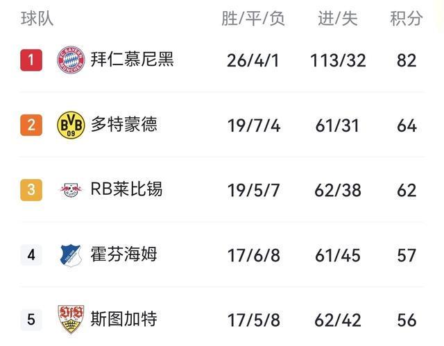 至此,拜仁继续刷新在本赛季德甲的傲人战绩,31轮26胜4平1负积82分,提前夺冠的情况下,已甩开第2的多特18分之多!