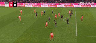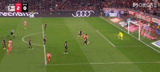 57’赖茨拉倒尼古拉斯·杰克逊,点球+红牌,穆西亚拉主罚晃倒门将轻松射入,拜仁3比0。